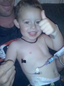 Seth recovered well and has not had any serious bleeds since. Seth has had a port (portacath), a small medical appliance, installed beneath the skin directly into a vein in his chest so that his parents can give him treatment for his haemophilia at home. Erin and Nathan have learned to do his infusions and Seth now has treatment a few times a week to help keep his factor levels up to hopefully prevent bleeding.